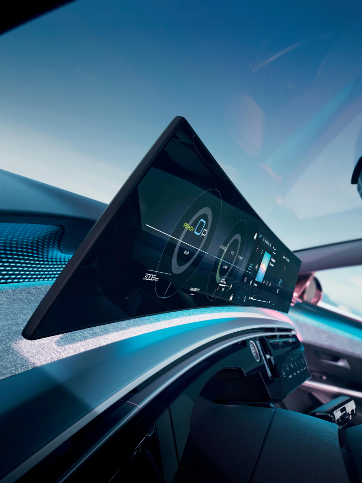 - Peugeot Panoramic Display 21-tolline kumer HD ekraan koos kaudse RGBW öö- ja päevavalgustusega ekraani all