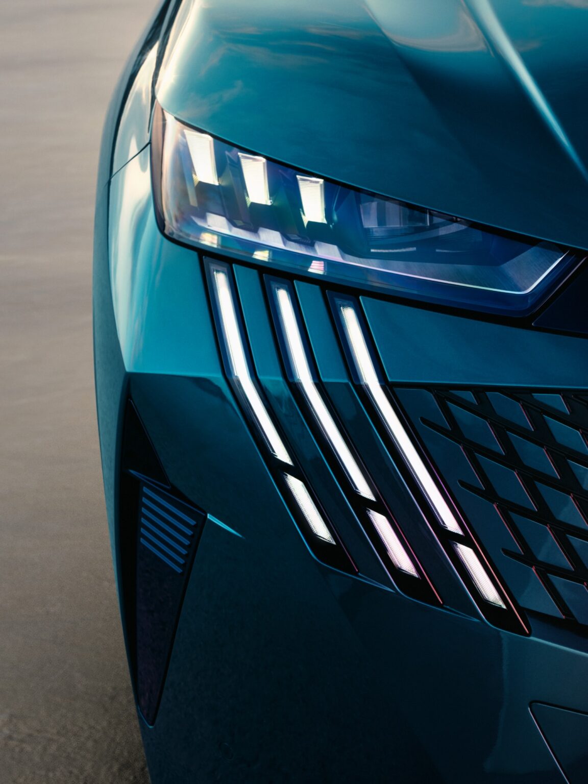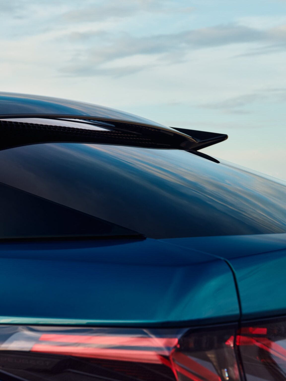 Oma fastback-maasturi silueti, kõrgtehnoloogilise esiosa üliõhukeste PEUGEOT PIXEL LED esitulede ja dünaamiliselt disainitud tagaosa spoileriga kehastab see PEUGEOT regeneratsiooni.